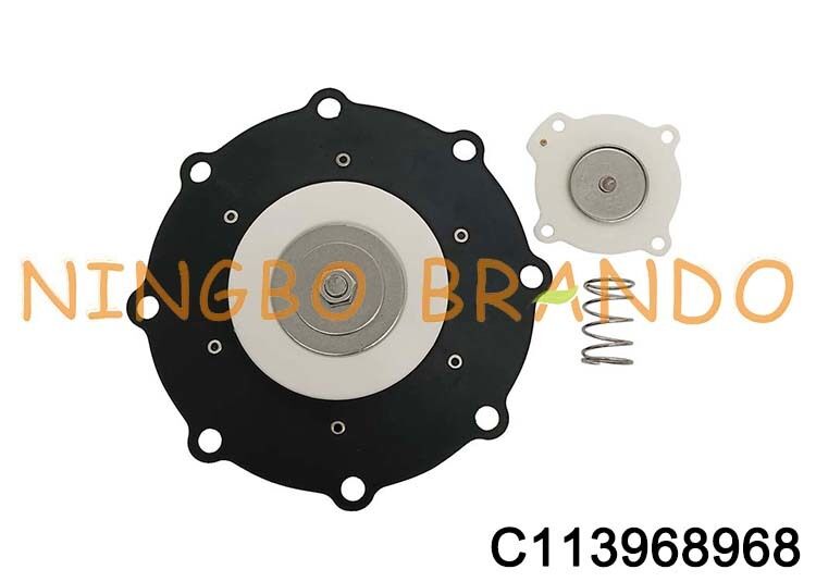 This C113968968 diaphragm is used for ASCO 3'' SCR353A230, SCR353G230, SCXR353A230, SCXR353G230 pulse valves. The standard diaphragm material is NBR, seat material is nylon. 1 set includes 1pc big diaphragm, 1pc small diaphragm and 2pcs springs. The diaphragm is the most important part of the pulse valve. If you have any demands, pls feel free to contact us.