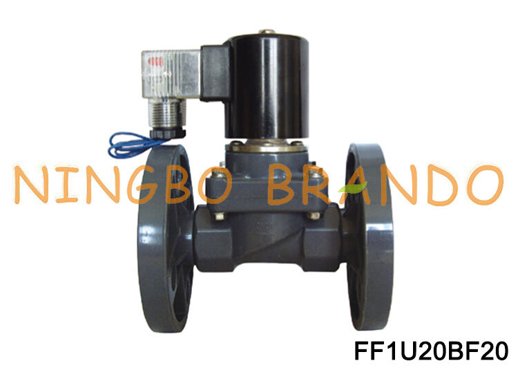 Dies ist ein korrosionsgeschütztes UPVC-Magnetventil, 3/4'' Flanschtyp, 20mm Öffnungsgröße, 2-Wege-Schließer, Kolben-Pilotbetätigung, 0,1 bis 6 bar Arbeitsdruck, kann mit EPDM- oder FKM-Dichtung für verschiedene Arbeitsmedien geliefert werden, verschiedene Spannungen zur Auswahl, wie z.B. 12VDC, 24VDC, 24VAC, 110VAC und 220VAC usw. Es wird für eine breite Palette von industriellen Anwendungen zur Steuerung von Flüssigkeiten eingesetzt.